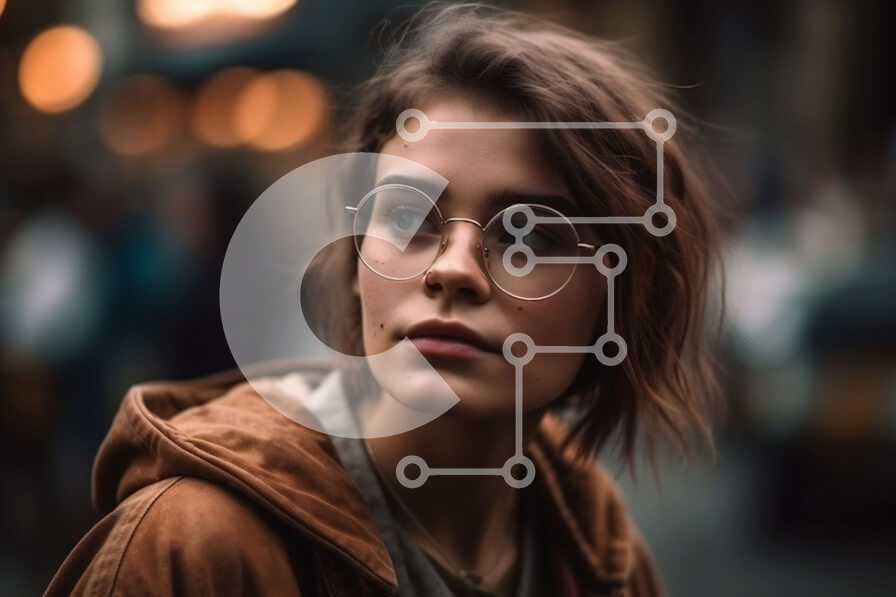 Intra Συλλεκτικό Ξύλινο Παζλ Plywood 4mm - Στοχαστική νεαρή γυναίκα σε έναν πολυσύχναστο δρόμο της πόλης Σε Ξύλινο Κουτί - Διαστάσεις Puzzle: 10x10 cm – 25 κομμάτια