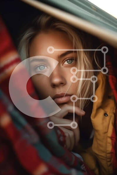 Intra Συλλεκτικό Ξύλινο Παζλ Plywood 4mm - Χαλαρή νεαρή γυναίκα κρυφοκοιτάζει πίσω από μια καρό κουβέρτα Σε Ξύλινο Κουτί - Διαστάσεις Puzzle: 10x10 cm – 25 κομμάτια