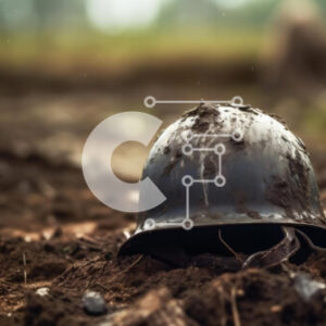 Intra Συλλεκτικό Ξύλινο Παζλ Plywood 4mm - Vintage στρατιωτικό κράνος στο χώμα Σε Ξύλινο Κουτί - Διαστάσεις Puzzle: 10x10 cm – 25 κομμάτια