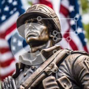 Intra Συλλεκτικό Ξύλινο Παζλ Plywood 4mm - Άγαλμα αμερικανικού στρατιώτη με αμερικανικές σημαίες Σε Ξύλινο Κουτί - Διαστάσεις Puzzle: 10x10 cm – 25 κομμάτια