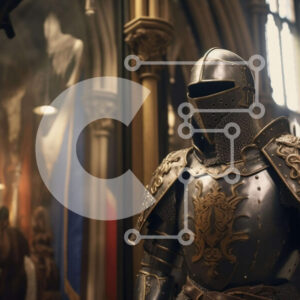 Intra Συλλεκτικό Ξύλινο Παζλ Plywood 4mm - Ιππότης με πανοπλία που στέκεται μπροστά από το Archway Σε Ξύλινο Κουτί - Διαστάσεις Puzzle: 10x10 cm – 25 κομμάτια