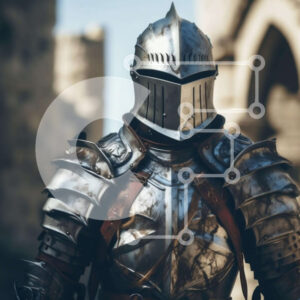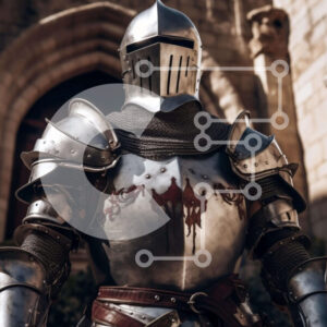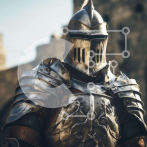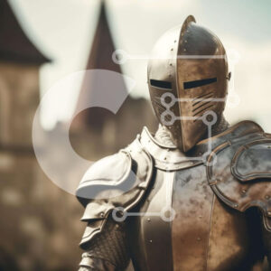 Intra Συλλεκτικό Ξύλινο Παζλ Plywood 4mm - Ιππότης με πλήρη πανοπλία που στέκεται μπροστά από ένα παλιό κτίριο Σε Ξύλινο Κουτί - Διαστάσεις Puzzle: 10x10 cm – 25 κομμάτια
