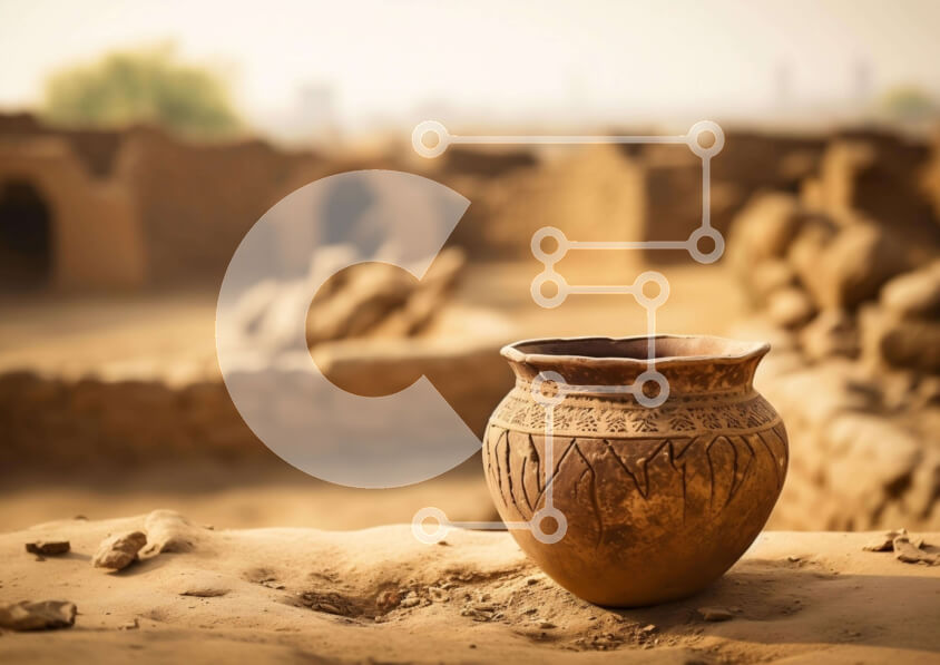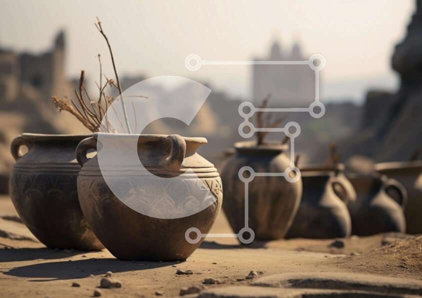 Intra Συλλεκτικό Ξύλινο Παζλ Plywood 4mm - Κεραμική του αρχαίου πολιτισμού μπροστά από ερείπια Σε Ξύλινο Κουτί - Διαστάσεις Puzzle: 10x10 cm – 25 κομμάτια