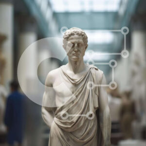Intra Συλλεκτικό Ξύλινο Παζλ Plywood 4mm - Άγαλμα της αρχαίας ρωμαϊκής προτομής στο μουσείο με τους ανθρώπους Σε Ξύλινο Κουτί - Διαστάσεις Puzzle: 10x10 cm – 25 κομμάτια