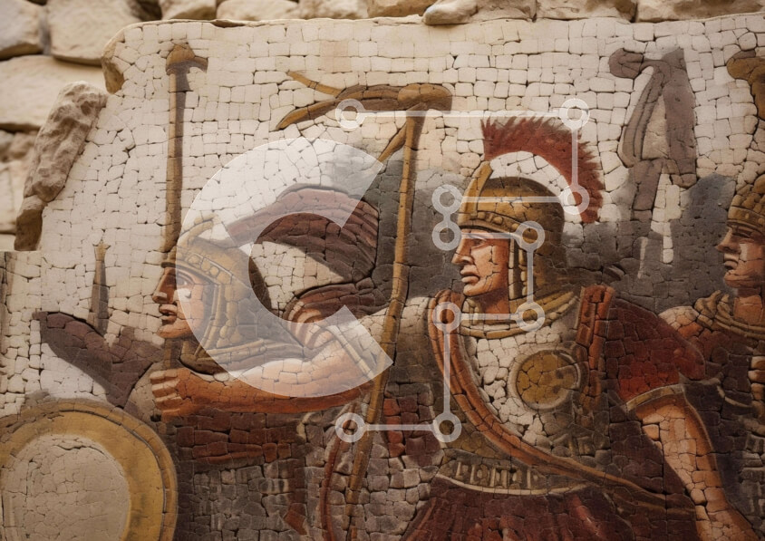 Intra Συλλεκτικό Ξύλινο Παζλ Plywood 4mm - Μωσαϊκό Ρωμαίων Στρατιωτών Σε Ξύλινο Κουτί - Διαστάσεις Puzzle: 10x10 cm – 25 κομμάτια