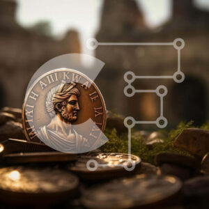 Intra Συλλεκτικό Ξύλινο Παζλ Plywood 4mm - Χάλκινο νόμισμα Ιουλίου Καίσαρα στο αρχαίο κτίριο Σε Ξύλινο Κουτί - Διαστάσεις Puzzle: 10x10 cm – 25 κομμάτια