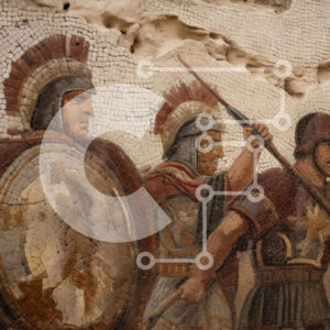 Intra Συλλεκτικό Ξύλινο Παζλ Plywood 4mm - Αρχαίο Μωσαϊκό Ρωμαίων Στρατιωτών Σε Ξύλινο Κουτί - Διαστάσεις Puzzle: 10x10 cm – 25 κομμάτια