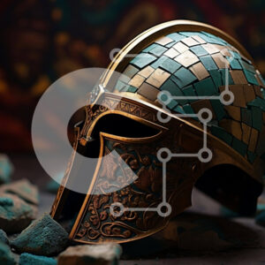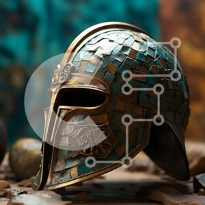 Intra Συλλεκτικό Ξύλινο Παζλ Plywood 4mm - Αρχαίο μπλε και χρυσό κράνος σε σπασμένο ξύλο Σε Ξύλινο Κουτί - Διαστάσεις Puzzle: 10x10 cm – 25 κομμάτια