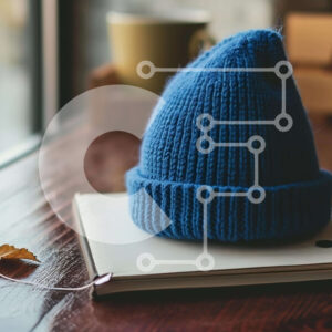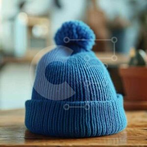 Intra Συλλεκτικό Ξύλινο Παζλ Plywood 4mm - Μπλε πλεκτό καπέλο σε ξύλινο τραπέζι Σε Ξύλινο Κουτί - Διαστάσεις Puzzle: 10x10 cm – 25 κομμάτια