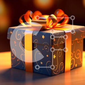 Intra Συλλεκτικό Ξύλινο Παζλ Plywood 4mm - Μπλε κουτί δώρου με πορτοκαλί κορδέλα στο τραπέζι με το φως των κεριών Σε Ξύλινο Κουτί - Διαστάσεις Puzzle: 10x10 cm – 25 κομμάτια