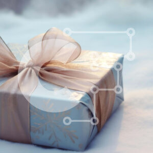 Intra Συλλεκτικό Ξύλινο Παζλ Plywood 4mm - Μπλε κουτί δώρου στο χιονισμένο έδαφος Σε Ξύλινο Κουτί - Διαστάσεις Puzzle: 10x10 cm – 25 κομμάτια