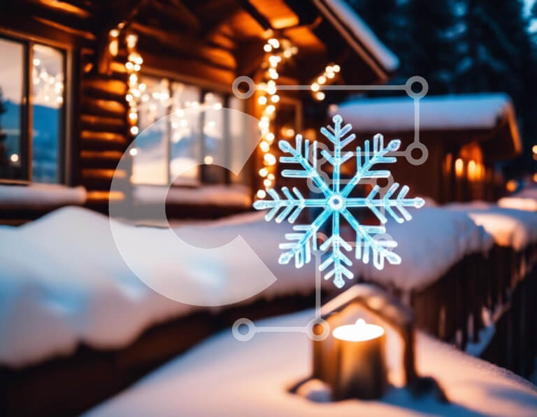 Intra Συλλεκτικό Ξύλινο Παζλ Plywood 4mm - Νιφάδα χιονιού σε χιονισμένο έδαφος με φωτισμένα φώτα Σε Ξύλινο Κουτί - Διαστάσεις Puzzle: 10x10 cm – 25 κομμάτια