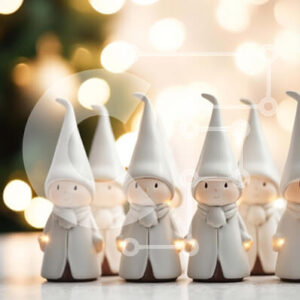 Intra Συλλεκτικό Ξύλινο Παζλ Plywood 4mm - Ομάδα λευκών ειδωλίων Gnome για εορταστική διακόσμηση Σε Ξύλινο Κουτί - Διαστάσεις Puzzle: 10x10 cm – 25 κομμάτια