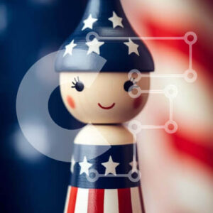 Intra Συλλεκτικό Ξύλινο Παζλ Plywood 4mm - Πατριωτικό παιχνίδι Gnome στην αμερικανική σημαία Σε Ξύλινο Κουτί - Διαστάσεις Puzzle: 10x10 cm – 25 κομμάτια