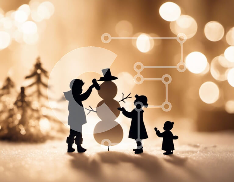 Intra Συλλεκτικό Ξύλινο Παζλ Plywood 4mm - Σιλουέτα των παιδιών που χτίζουν έναν χιονάνθρωπο Σε Ξύλινο Κουτί - Διαστάσεις Puzzle: 10x10 cm – 25 κομμάτια