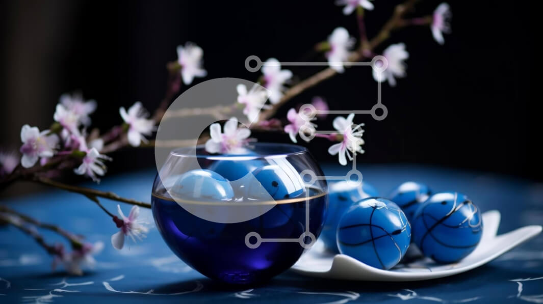 Intra Συλλεκτικό Ξύλινο Παζλ Plywood 4mm - Στολισμός Πασχαλινών Τραπεζιών με Μπλε Αυγά και Άνθη Κερασιάς Σε Ξύλινο Κουτί - Διαστάσεις Puzzle: 10x10 cm – 25 κομμάτια
