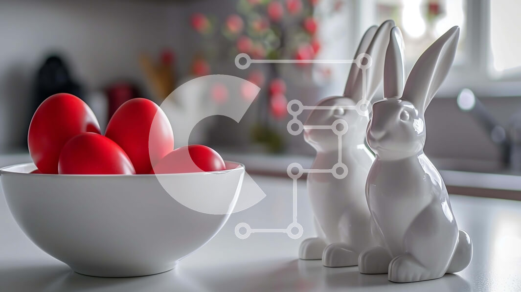 Intra Συλλεκτικό Ξύλινο Παζλ Plywood 4mm - Στολισμός Πασχαλινών Τραπεζιών με ειδώλια λευκού κουνελιού και κόκκινα αυγά Σε Ξύλινο Κουτί - Διαστάσεις Puzzle: 10x10 cm – 25 κομμάτια