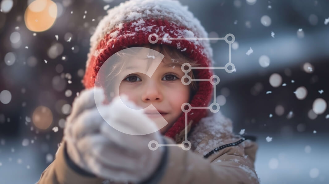 Intra Συλλεκτικό Ξύλινο Παζλ Plywood 4mm - Συγκινημένο παιδί στο χιόνι με κόκκινο χειμερινό καπέλο και γάντια Σε Ξύλινο Κουτί - Διαστάσεις Puzzle: 10x10 cm – 25 κομμάτια