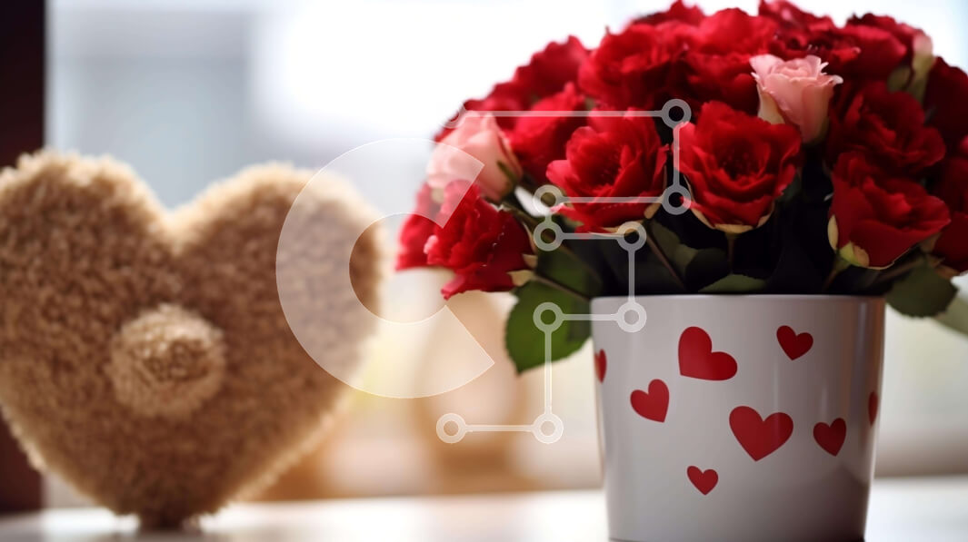 Intra Συλλεκτικό Ξύλινο Παζλ Plywood 4mm - Στοργική σκηνή του Αγίου Βαλεντίνου με κόκκινα τριαντάφυλλα και αρκουδάκια Σε Ξύλινο Κουτί - Διαστάσεις Puzzle: 10x10 cm – 25 κομμάτια