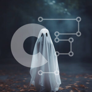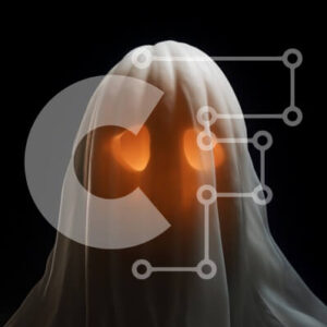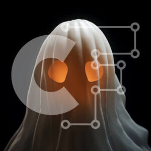 Intra Συλλεκτικό Ξύλινο Παζλ Plywood 4mm - Φάντασμα με λαμπερά πορτοκαλί μάτια που αντιπροσωπεύουν το πνεύμα του Halloween Σε Ξύλινο Κουτί - Διαστάσεις Puzzle: 10x10 cm – 25 κομμάτια