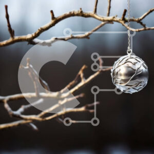 Intra Συλλεκτικό Ξύλινο Παζλ Plywood 4mm - Ασημένιο στολίδι που κρέμεται από κλαδί δέντρου στο χιονισμένο δάσος Σε Ξύλινο Κουτί - Διαστάσεις Puzzle: 10x10 cm – 25 κομμάτια