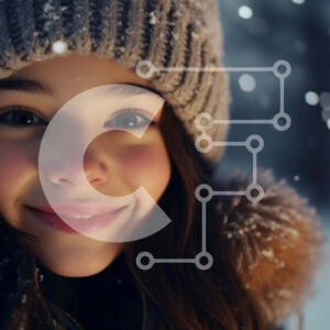 Intra Συλλεκτικό Ξύλινο Παζλ Plywood 4mm - Χαμογελαστό κορίτσι στο χιόνι με πορτοκαλί καπέλο Σε Ξύλινο Κουτί - Διαστάσεις Puzzle: 10x10 cm – 25 κομμάτια