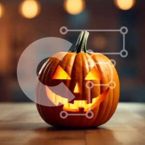 Intra Συλλεκτικό Ξύλινο Παζλ Plywood 4mm - Χαμογελαστή κολοκύθα Jack-o'-lantern σε λευκή επιφάνεια Σε Ξύλινο Κουτί - Διαστάσεις Puzzle: 10x10 cm – 25 κομμάτια