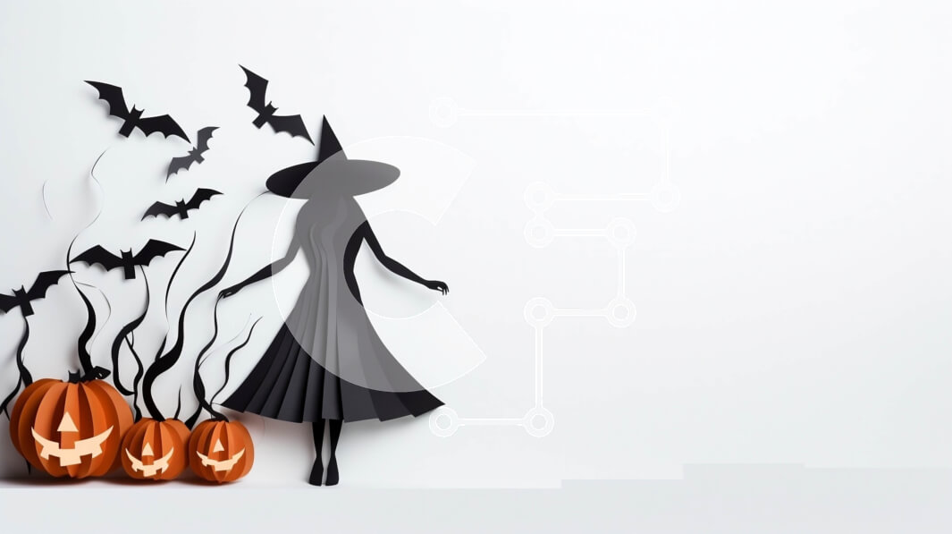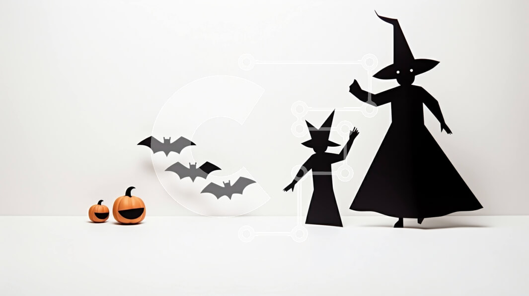 Intra Συλλεκτικό Ξύλινο Παζλ Plywood 4mm - Ασπρόμαυρη χάρτινη κοπή μαγισσών με κολοκύθες Σε Ξύλινο Κουτί - Διαστάσεις Puzzle: 10x10 cm – 25 κομμάτια