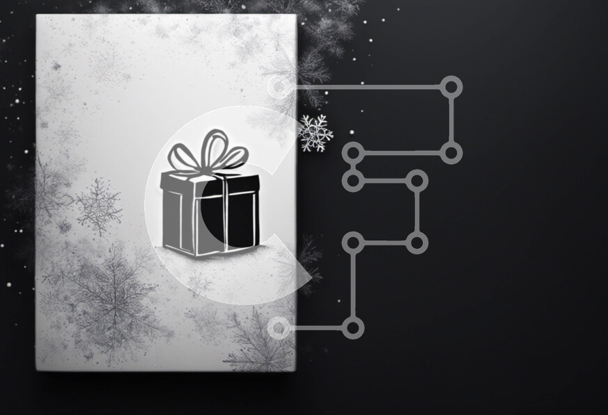Intra Συλλεκτικό Ξύλινο Παζλ Plywood 4mm - Ασπρόμαυρη χειμερινή σκηνή με κουτί δώρου και νιφάδες χιονιού Σε Ξύλινο Κουτί - Διαστάσεις Puzzle: 10x10 cm – 25 κομμάτια