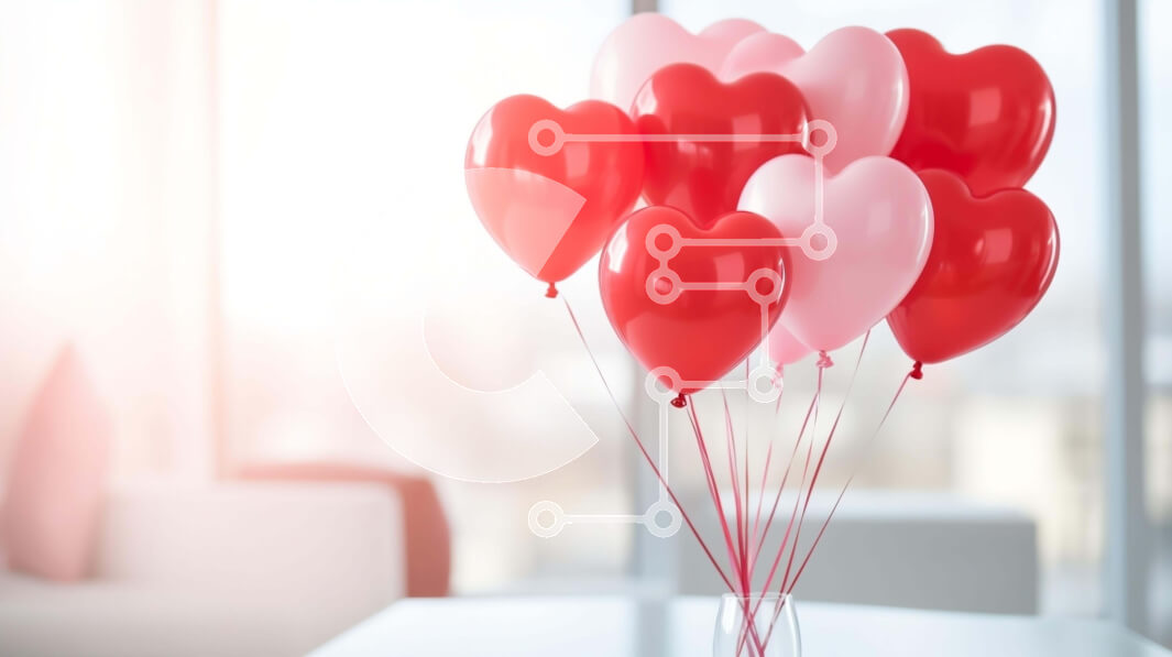 Intra Συλλεκτικό Ξύλινο Παζλ Plywood 4mm - Βάζο με κόκκινα και ροζ μπαλόνια σε σχήμα καρδιάς σε ένα τραπέζι Σε Ξύλινο Κουτί - Διαστάσεις Puzzle: 10x10 cm – 25 κομμάτια
