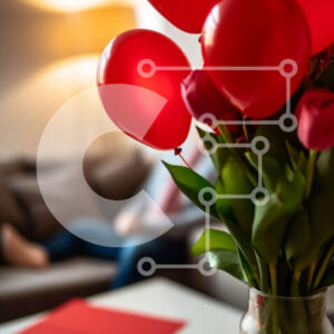 Intra Συλλεκτικό Ξύλινο Παζλ Plywood 4mm - Γιορτή του Αγίου Βαλεντίνου με κόκκινα μπαλόνια και τριαντάφυλλα Σε Ξύλινο Κουτί - Διαστάσεις Puzzle: 10x10 cm – 25 κομμάτια