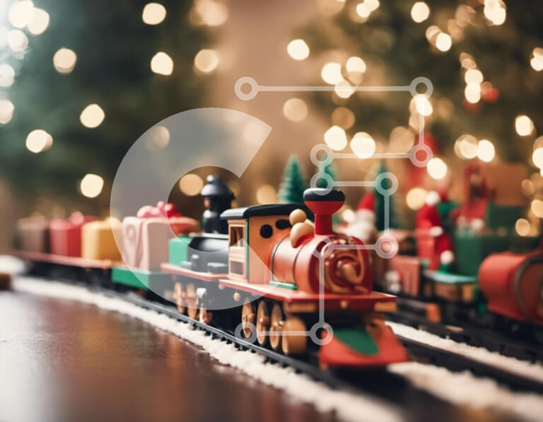 Intra Συλλεκτικό Ξύλινο Παζλ Plywood 4mm - Γιορτινό παιχνίδι τρένο με χριστουγεννιάτικα δέντρα Σε Ξύλινο Κουτί - Διαστάσεις Puzzle: 10x10 cm – 25 κομμάτια