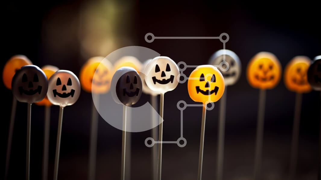 Intra Συλλεκτικό Ξύλινο Παζλ Plywood 4mm - Γλειφιτζούρια κολοκύθας σε σχήμα Jack-o'-φαναριού σε σκούρο φόντο Σε Ξύλινο Κουτί - Διαστάσεις Puzzle: 10x10 cm – 25 κομμάτια