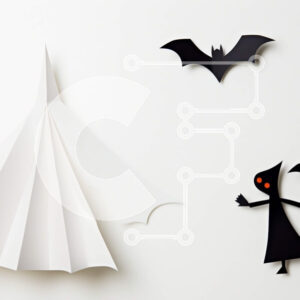 Intra Συλλεκτικό Ξύλινο Παζλ Plywood 4mm - Διακόσμηση αποκριών με ιπτάμενες νυχτερίδες και φαντάσματα σε λευκό τοίχο Σε Ξύλινο Κουτί - Διαστάσεις Puzzle: 10x10 cm – 25 κομμάτια
