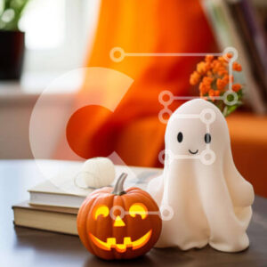 Intra Συλλεκτικό Ξύλινο Παζλ Plywood 4mm - Διακόσμηση Halloween Ghost με πορτοκαλί κολοκύθα Σε Ξύλινο Κουτί - Διαστάσεις Puzzle: 10x10 cm – 25 κομμάτια