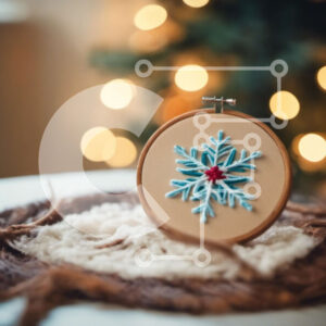 Intra Συλλεκτικό Ξύλινο Παζλ Plywood 4mm - Διακόσμηση με τσέρκι με κέντημα με νιφάδα χιονιού για την εορταστική περίοδο Σε Ξύλινο Κουτί - Διαστάσεις Puzzle: 10x10 cm – 25 κομμάτια