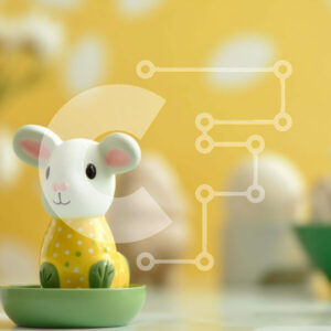 Intra Συλλεκτικό Ξύλινο Παζλ Plywood 4mm - Διακόσμηση Πασχαλινών Τραπεζιών με Λευκό και Κίτρινο Ειδώλιο ποντικιού Σε Ξύλινο Κουτί - Διαστάσεις Puzzle: 10x10 cm – 25 κομμάτια