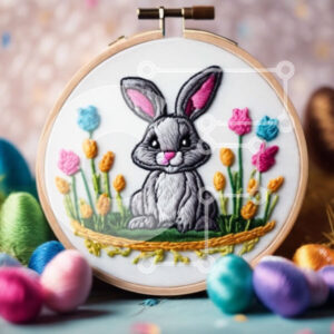 Intra Συλλεκτικό Ξύλινο Παζλ Plywood 4mm - Διακόσμηση με τσέρκι με κεντήματα με λαγουδάκι και αυγά Σε Ξύλινο Κουτί - Διαστάσεις Puzzle: 10x10 cm – 25 κομμάτια