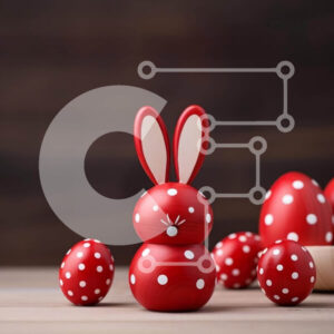 Intra Συλλεκτικό Ξύλινο Παζλ Plywood 4mm - Διακόσμηση Πασχαλινών Τραπεζιών με Κόκκινα ειδώλια λαγουδάκι και λευκά αυγά Σε Ξύλινο Κουτί - Διαστάσεις Puzzle: 10x10 cm – 25 κομμάτια