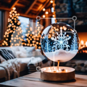 Intra Συλλεκτικό Ξύλινο Παζλ Plywood 4mm - Διακόσμηση μπάλας με γυάλινη νιφάδα χιονιού σε ξύλινο τραπέζι Σε Ξύλινο Κουτί - Διαστάσεις Puzzle: 10x10 cm – 25 κομμάτια