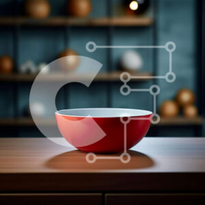 Intra Συλλεκτικό Ξύλινο Παζλ Plywood 4mm - Άδειο κόκκινο μπολ σε ξύλινο τραπέζι με φόντο ράφι Σε Ξύλινο Κουτί - Διαστάσεις Puzzle: 10x10 cm – 25 κομμάτια