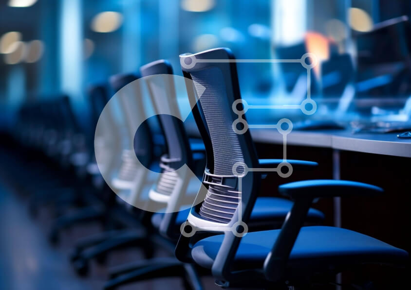 Intra Συλλεκτικό Ξύλινο Παζλ Plywood 4mm - Κενός χώρος γραφείου με μαύρες καρέκλες και οθόνες Σε Ξύλινο Κουτί - Διαστάσεις Puzzle: 10x10 cm – 25 κομμάτια