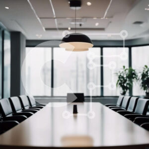 Intra Συλλεκτικό Ξύλινο Παζλ Plywood 4mm - Αίθουσα συνεδριάσεων με στρογγυλό ξύλινο τραπέζι και μαύρες δερμάτινες καρέκλες Σε Ξύλινο Κουτί - Διαστάσεις Puzzle: 10x10 cm – 25 κομμάτια