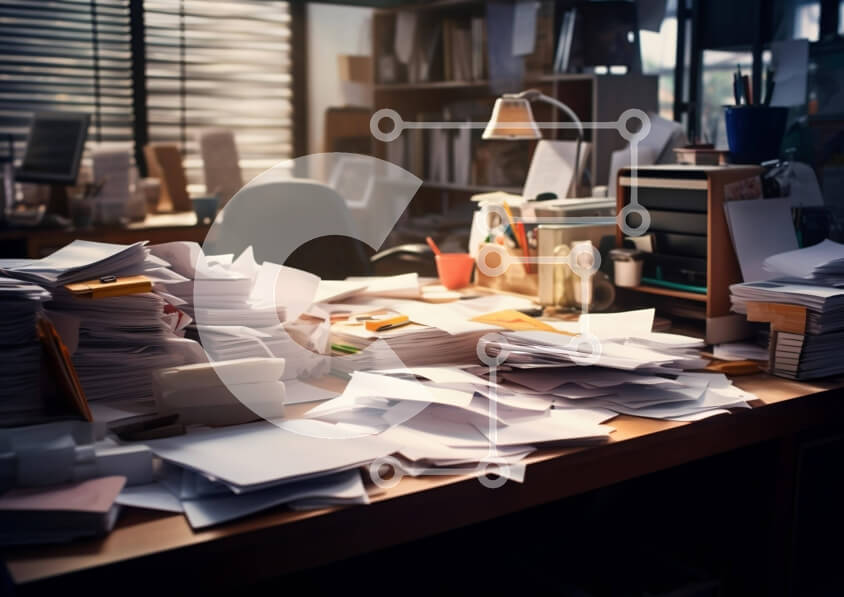Intra Συλλεκτικό Ξύλινο Παζλ Plywood 4mm - Ακατάστατο γραφείο με χαρτιά και φορητό υπολογιστή Σε Ξύλινο Κουτί - Διαστάσεις Puzzle: 10x10 cm – 25 κομμάτια