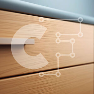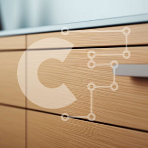 Intra Συλλεκτικό Ξύλινο Παζλ Plywood 4mm - Κοντινό πλάνο μοντέρνου ξύλινου ντουλαπιού με συρτάρια και πόρτα Σε Ξύλινο Κουτί - Διαστάσεις Puzzle: 10x10 cm – 25 κομμάτια