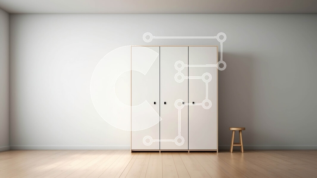 Intra Συλλεκτικό Ξύλινο Παζλ Plywood 4mm - Λευκή ντουλάπα με τρεις πόρτες σε ένα άδειο δωμάτιο Σε Ξύλινο Κουτί - Διαστάσεις Puzzle: 10x10 cm – 25 κομμάτια