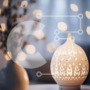 Intra Συλλεκτικό Ξύλινο Παζλ Plywood 4mm - Λευκό φωτιστικό διάχυσης με λουλούδια στο τραπέζι Σε Ξύλινο Κουτί - Διαστάσεις Puzzle: 10x10 cm – 25 κομμάτια
