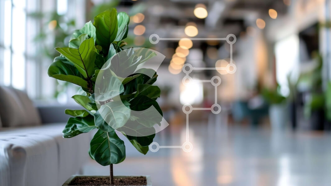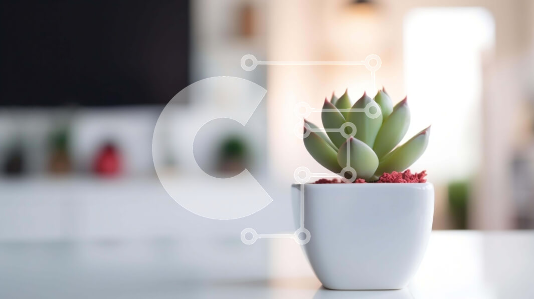 Intra Συλλεκτικό Ξύλινο Παζλ Plywood 4mm - Μικρό φυτό σε γλάστρα σε λευκό τραπέζι με τηλεοράσεις στο φόντο Σε Ξύλινο Κουτί - Διαστάσεις Puzzle: 10x10 cm – 25 κομμάτια