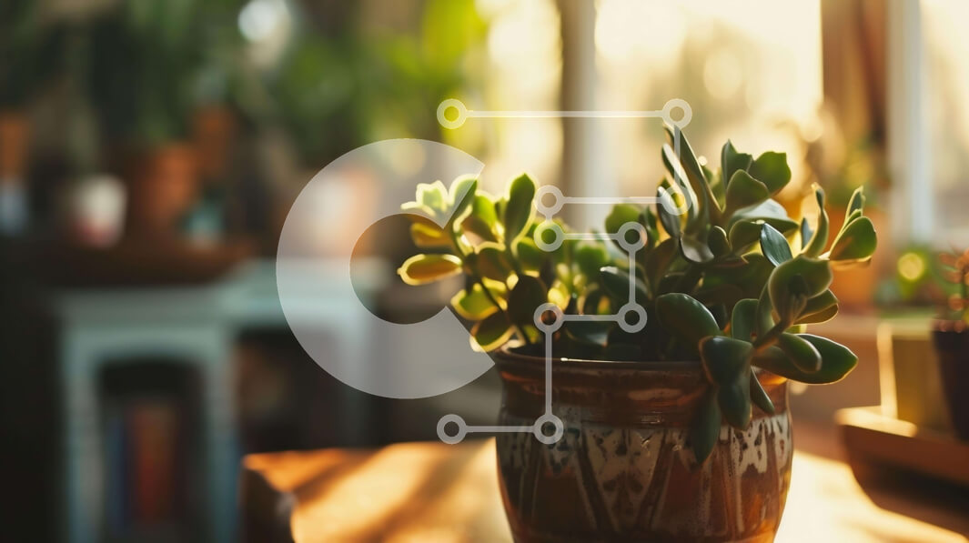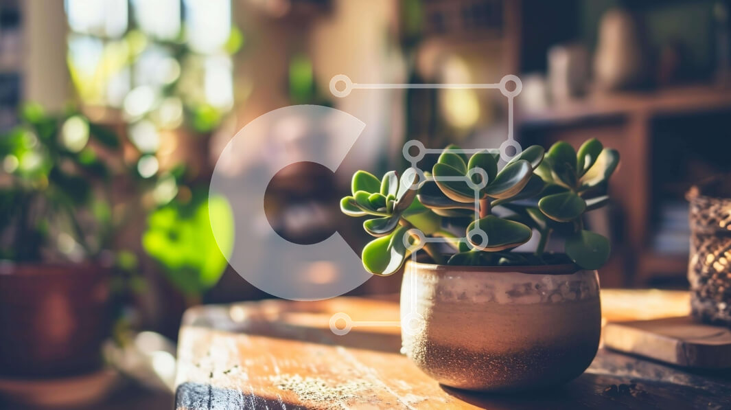 Intra Συλλεκτικό Ξύλινο Παζλ Plywood 4mm - Μικρό φυτό σε γλάστρα σε ξύλινο τραπέζι στο σαλόνι Σε Ξύλινο Κουτί - Διαστάσεις Puzzle: 10x10 cm – 25 κομμάτια
