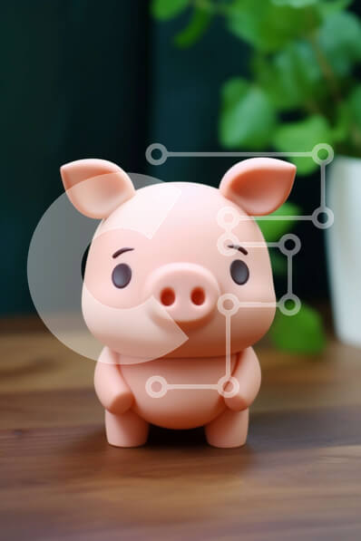 Intra Συλλεκτικό Ξύλινο Παζλ Plywood 4mm - Μικρό ροζ γουρούνι παιχνίδι στο τραπέζι με φυτά σε γλάστρες Σε Ξύλινο Κουτί - Διαστάσεις Puzzle: 10x10 cm – 25 κομμάτια